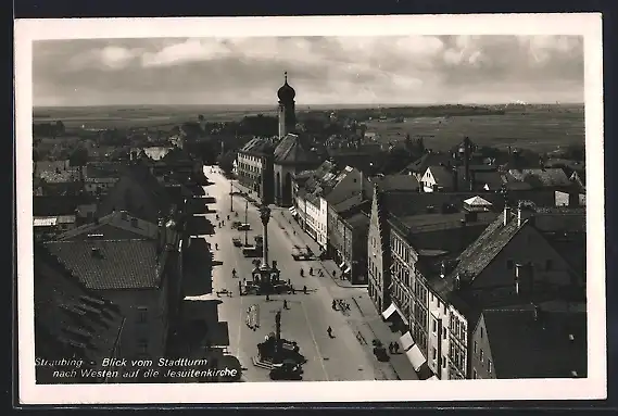 AK Straubing, Blick vom Stadtturm auf die Jesuitenkirche