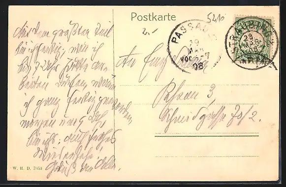 alte Ansichtskarte, gelaufen 1908, Eckknick li. oben, guter Zustand