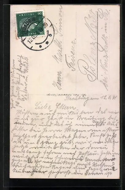 alte Ansichtskarte, gelaufen 1931, Eckknick li. unten, guter Zustand