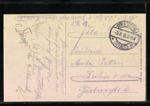 alte Ansichtskarte, gelaufen als Feldpost 1918, guter Zustand