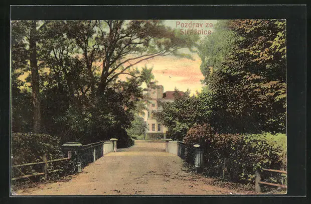 AK Stráznice, Strassenpartie mit Blick auf Anwesen