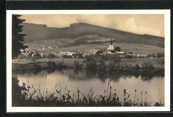 AK Strazov na Sumave, Blick über das Wasser zum Ort