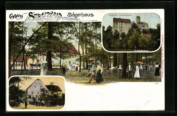 AK Streitwald b. Frohburg, Gasthaus Jägerhaus mit Schloss Gnandstein