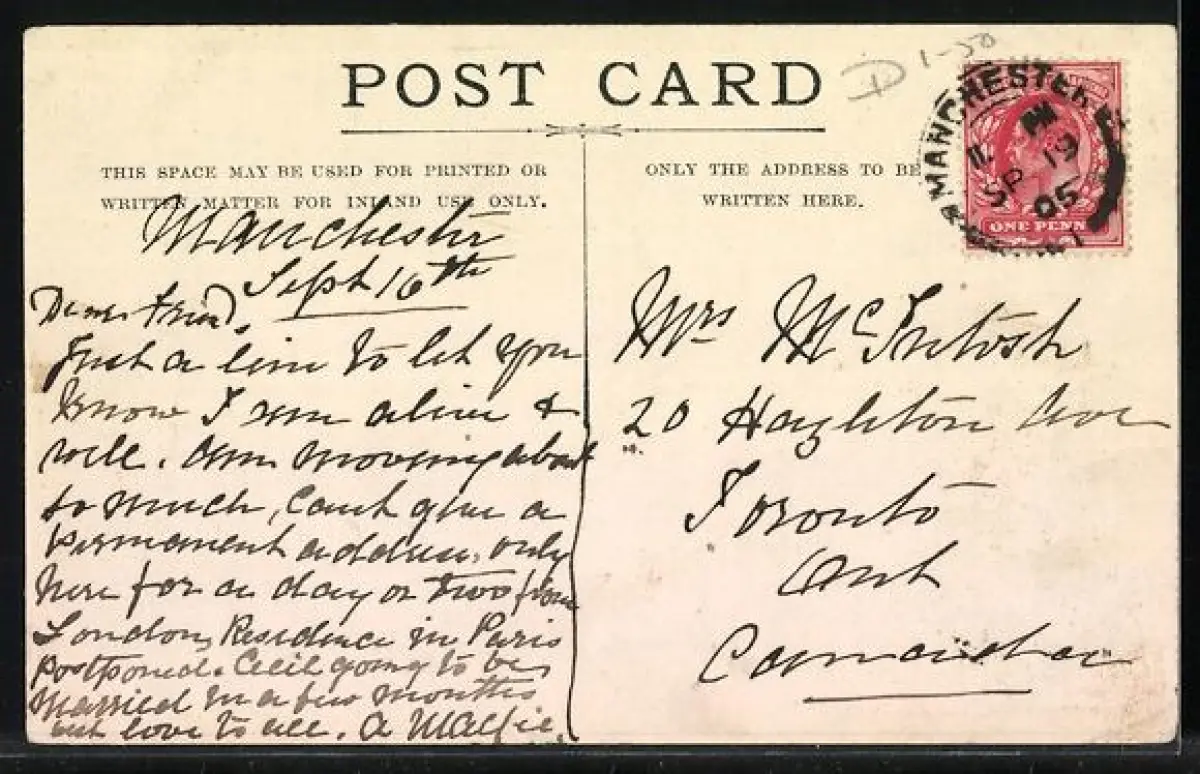 alte Ansichtskarte, gelaufen 1905, Eckknicke oben, guter Zustand