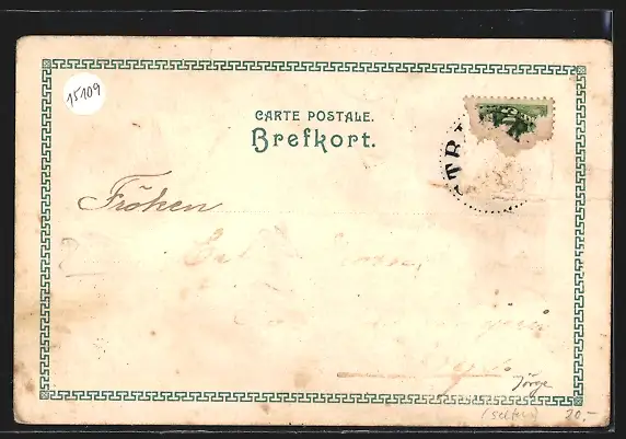 alte Ansichtskarte, gelaufen, Briefmarke entfernt, rückseitig Oberflächenschaden, Bugspur li. oben, guter Zustand