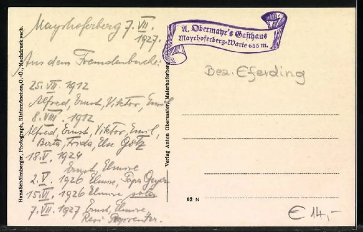AK Stroheim, Mayrhoferberg, Anton Obermayr`s Gasthaus, Mayrhoferberg Warte