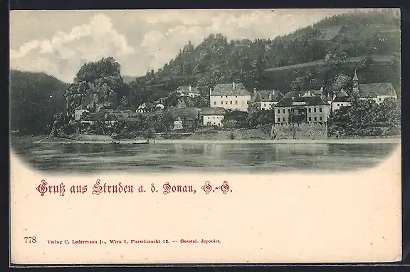 AK Struden a. d. Donau, Ortsansicht vom Fluss aus