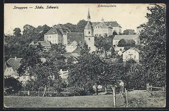 AK Struppen / Sächs. Schweiz, Teilansicht mit Erholungsheim und Kirche