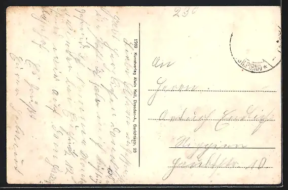 alte Ansichtskarte, gelaufen, Briefmarke entfernt, guter Zustand