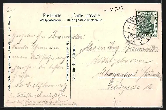alte Ansichtskarte, gelaufen 1907, guter Zustand