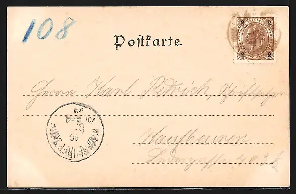 alte Ansichtskarte, gelaufen 1899, guter Zustand