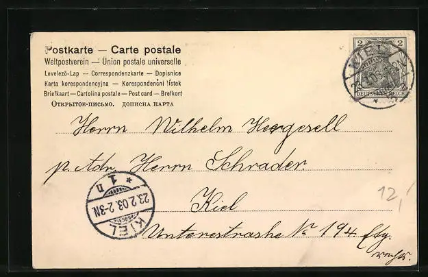 alte Ansichtskarte, gelaufen 1903, guter Zustand