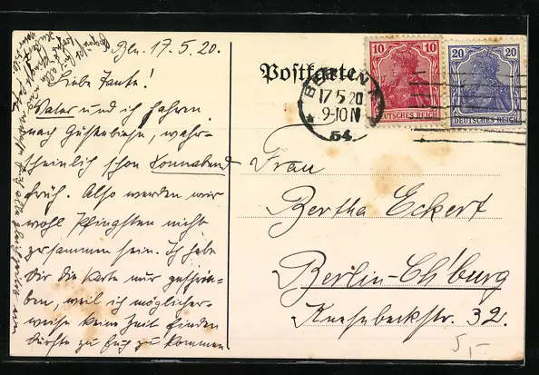 alte Ansichtskarte, gelaufen 1920, Stempelspur, guter Zustand
