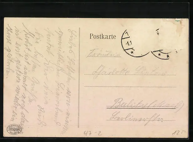 alte Ansichtskarte, gelaufen, Briefmarke entfernt, rückseitig Oberflächenschaden, guter Zustand