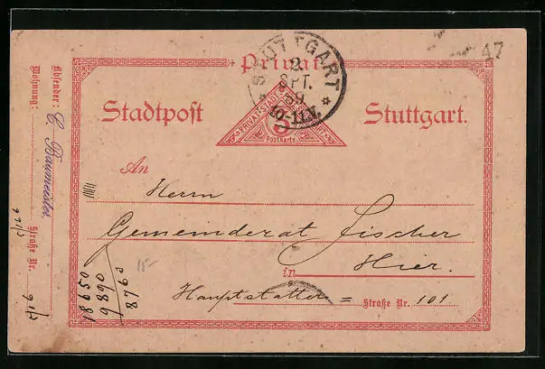 AK Stuttgart, 1889, Private Stadtpost