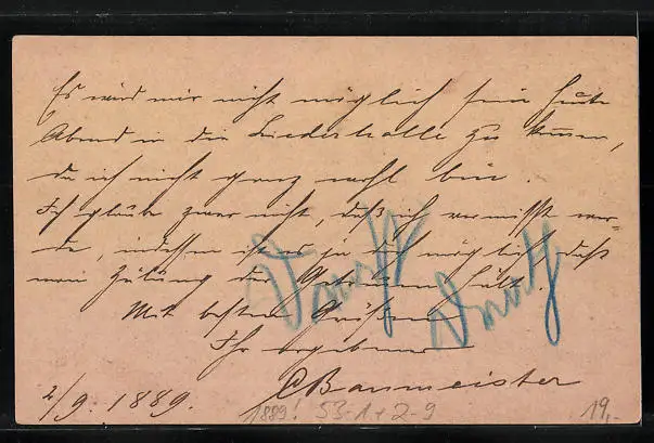 alte Ansichtskarte, gelaufen 1889, guter Zustand