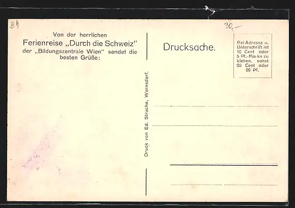 Personenbezogene Daten auf der Rückseite der Karte wurden durch blauen Textmarker unkenntlich gemacht. Die blauen Stellen sind auf die Vorderseite durchgeweicht und wirken sich negativ auf das Postkartenfoto aus