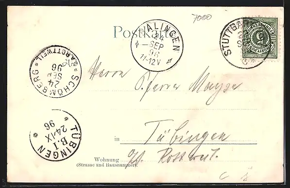 alte Ansichtskarte, gelaufen 1896, Kleiner Einriss li. oben, guter Zustand