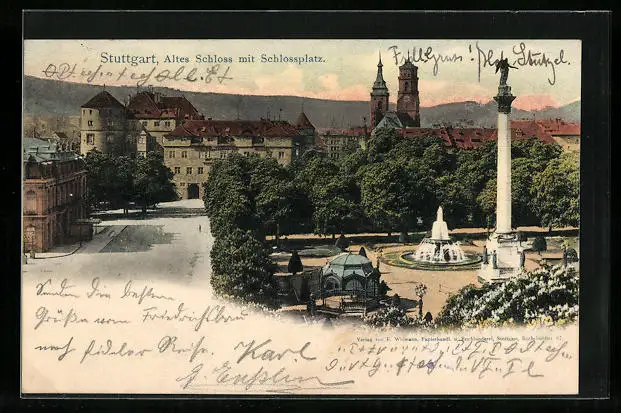 AK Stuttgart, Altes Schloss mit Schlossplatz