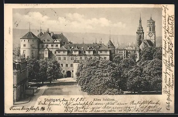 AK Stuttgart, Altes Schloss mit Uhrenturm