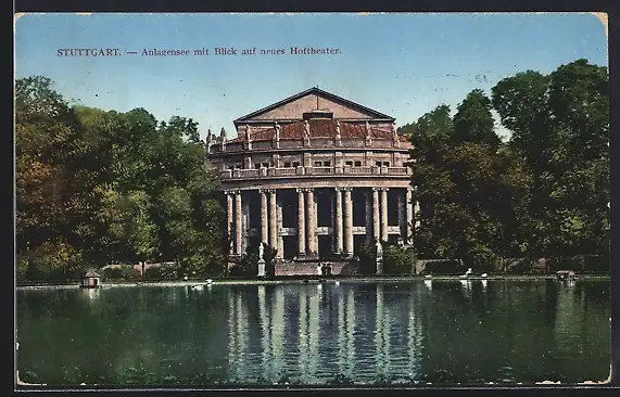 AK Stuttgart, Anlagensee mit Blick auf neues Hoftheater