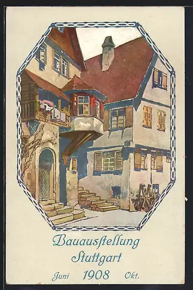 AK Stuttgart, Bauausstellung 1908, Häuserpartie