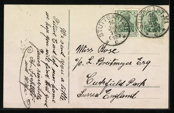 alte Ansichtskarte, gelaufen 1910, guter Zustand