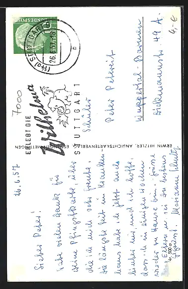 gelaufen 1957, rückseitig Klebe- und Papierreste, guter Zustand