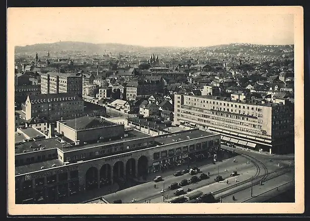 AK Stuttgart, Blick vom Bahnhofsturm auf die Stadt