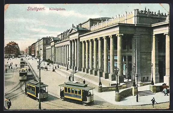 AK Stuttgart, Blick zum Königsbau mit Strassenbahn