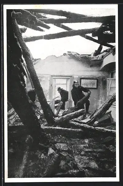 Personenbezogene Daten auf der Rückseite der Karte wurden durch blauen Textmarker unkenntlich gemacht. Die blauen Stellen sind auf die Vorderseite durchgeweicht und wirken sich negativ auf das Postkartenfoto aus