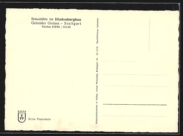 AK Stuttgart, Café Hindenburgbau, Bes. Gebr. Greiner, Sitzplätze