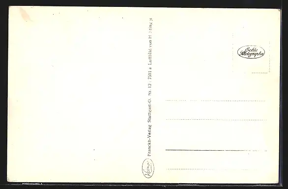 Personenbezogene Daten auf der Rückseite der Karte wurden durch blauen Textmarker unkenntlich gemacht. Die blauen Stellen sind auf die Vorderseite durchgeweicht und wirken sich negativ auf das Postkartenfoto aus