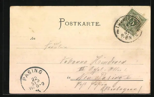 alte Ansichtskarte, gelaufen 1901, Stempelspur, Bugspur diag. oben Mitte, guter Zustand