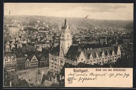 AK Stuttgart, Das Rathaus von der Stiftskirche aus