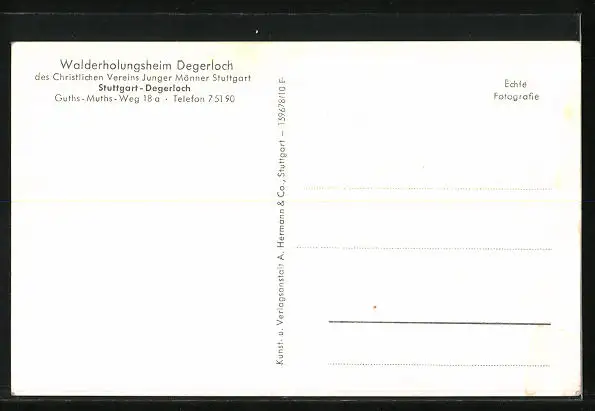 AK Stuttgart-Degerloch, Hotel und Walderholungsheim, Guths-Muths-Weg 18a