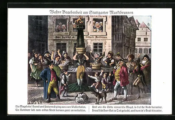 AK Stuttgart, Die Magd ohne Rock am Brunnen