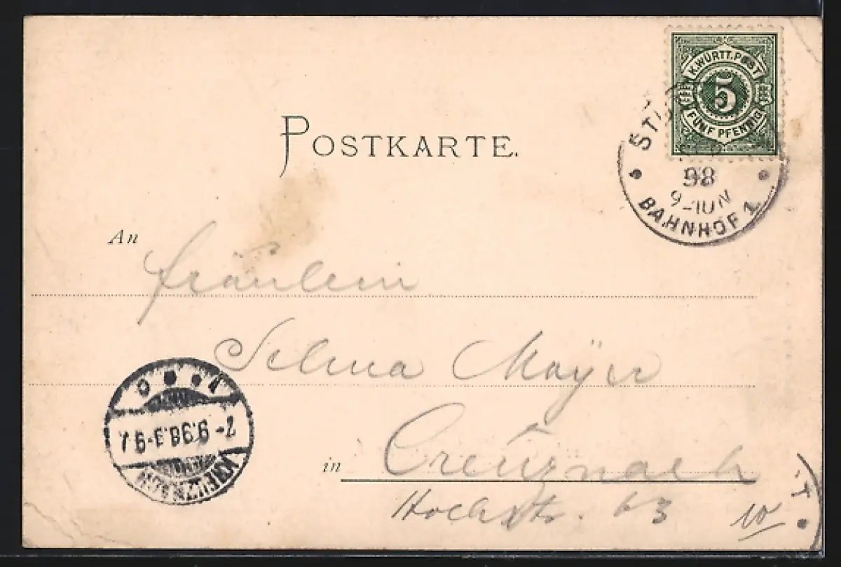 gelaufen 1898, Eckknicke oben links und unten rechts, guter Zustand