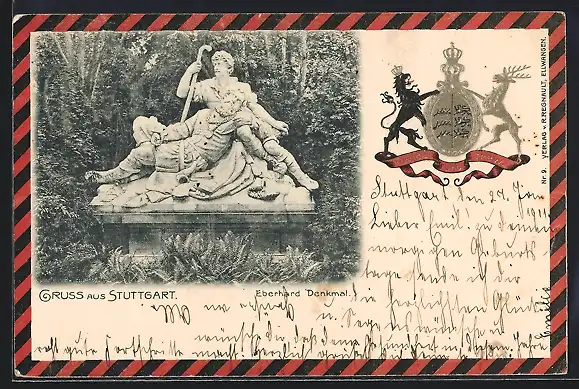 AK Stuttgart, Eberhard Denkmal, Wappen