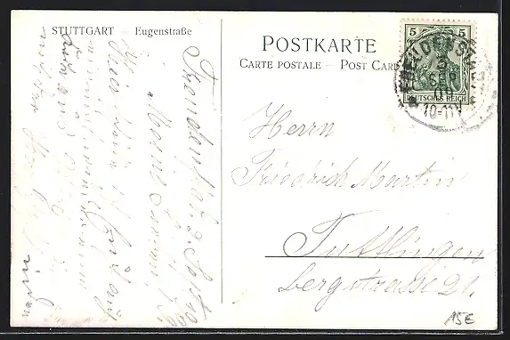AK Stuttgart, Eugenstrasse mit Brunnen