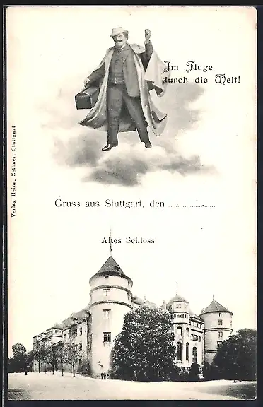 AK Stuttgart, Fliegender Herr über dem alten Schloss