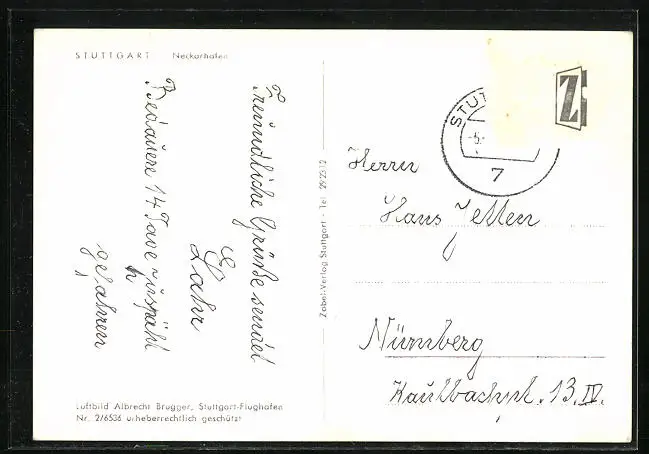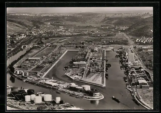 AK Stuttgart, Fliegeraufnahme vom Neckarhafen