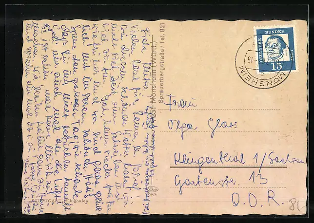 alte Ansichtskarte, gelaufen 1963, guter Zustand