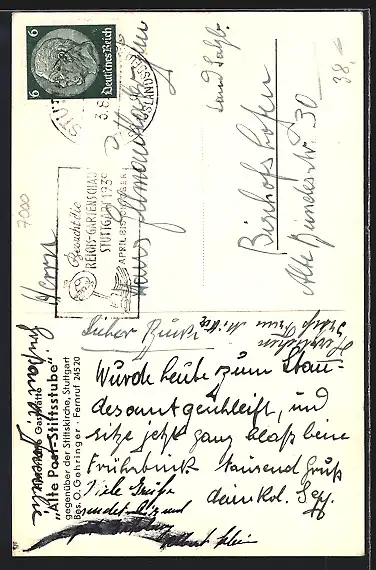 AK Stuttgart, Gasthaus Alte Post-Stiftsstube beleuchtet bei Nacht