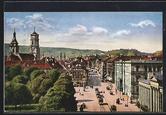 AK Stuttgart, Handelshof an der Königstrasse mit Strassenbahn