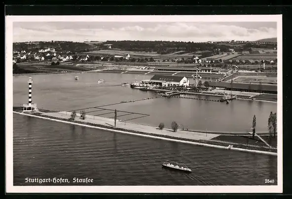 AK Stuttgart-Hofen, Gesamtansicht mit Stausee