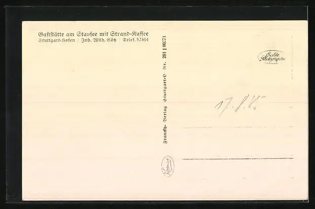 AK Stuttgart-Hofen, Strandkaffee am Stausee