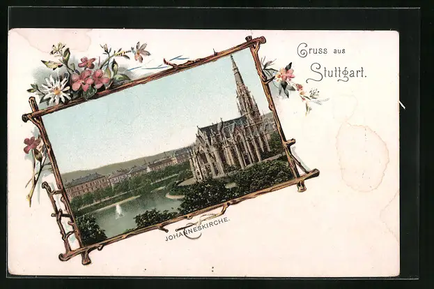 AK Stuttgart, Johanneskirche im Passepartoutrahmen