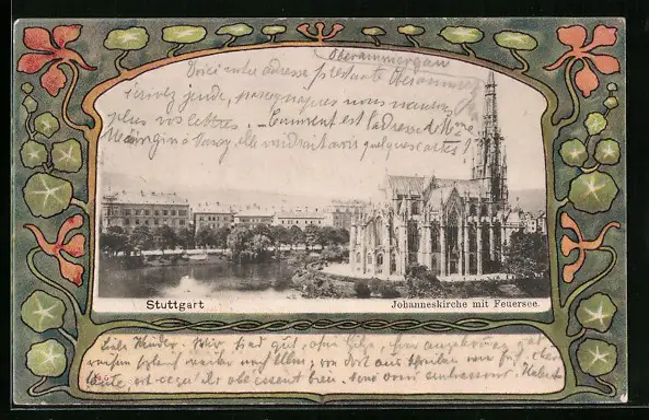 AK Stuttgart, Johanneskirche mit Feuersee, Passepartout