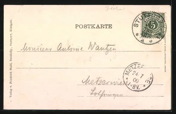 alte Ansichtskarte, gelaufen 1900, guter Zustand